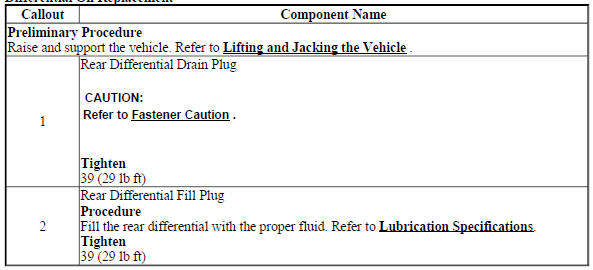 - Refill the rear differential assembly. Refer to Differential Oil