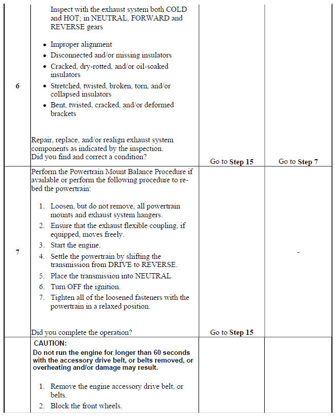 7 This step is designed to isolate the transmission from the engine to determine if the disturbance is related to the engine ONLY.