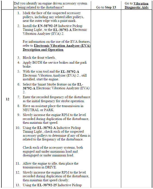 12 If the mark placed on the face of an engine driven accessory pulley seems to stand still while running this test, then that accessory system is either responding to an existing frequency, such as engine firing pulses, or creating a disturbance.